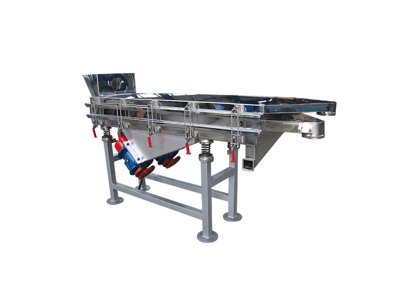 產(chǎn)品概述直線振動(dòng)篩具有穩(wěn)定可靠、消耗少、噪音低、壽命長(zhǎng)、振型穩(wěn)、篩分效率高等優(yōu)點(diǎn)。主要用于磨料磨具原料、化工、塑料、醫(yī)藥、樹(shù)脂粉、陶瓷原料、冶金、建材、糧食、化肥等行業(yè)中的干式粉狀、細(xì)顆粒狀或細(xì)微粉物料的篩分。工作原理直線振動(dòng)篩采用雙振動(dòng)電機(jī)驅(qū)動(dòng),當(dāng)兩臺(tái)振動(dòng)電機(jī)做同步、反向旋轉(zhuǎn)時(shí),其偏心塊所產(chǎn)生的激振力在平行于電機(jī)軸線的方向相互抵消,在垂直于電機(jī)軸的方向疊為一合力,因此篩機(jī)的運(yùn)動(dòng)軌跡為一直線。其兩電機(jī)軸相對(duì)篩面有一傾角,在激振力和物料自重力的合力作用下,物料在篩面上被拋起跳躍式向前作直線運(yùn)動(dòng),從而達(dá)到對(duì)物料進(jìn)行篩選和分級(jí)的目的。產(chǎn)品特點(diǎn)1、密封性好、極少粉塵溢散;上下網(wǎng)架密封好,不漏粉。2、耗能少、噪音低、篩網(wǎng)使用壽命長(zhǎng)。3、篩分精度高、處理量大、結(jié)構(gòu)簡(jiǎn)單。4、設(shè)備加清網(wǎng)裝置,物料透網(wǎng)率高,不堵網(wǎng)。5、全封閉結(jié)構(gòu)、自動(dòng)排料、更適合于流水線作業(yè)。6、篩體各部分均采用扎制鋼板及型材焊接而成(部分組體間為螺栓連接)整體剛度好,牢固可靠。7、使用方便,維修簡(jiǎn)單,使用壽命長(zhǎng)等。8、獨(dú)特之篩網(wǎng)結(jié)構(gòu)設(shè)計(jì),方便和快速更換篩網(wǎng)(只需3到5分鐘),此外此種設(shè)計(jì)允許使用各種篩網(wǎng)(尼龍、特種龍、PP網(wǎng))。技術(shù)參數(shù)型號(hào)層數(shù)功率(KW)篩網(wǎng)尺寸(mm)篩網(wǎng)目數(shù)(目/寸)頻率(次/分)安裝傾角(°)5201-6層0.25-0.75500*20002-3259600-10°5250.37-1.15500*200010200.75-1.51000*200010250.75-1.51000*250010301.1-1.51000*300010401.5-2.21000*400012241.5-2.21200*240012401.5-31500*400015301.5-31500*300015402.2-3.1500*400020503-3.72000*5000